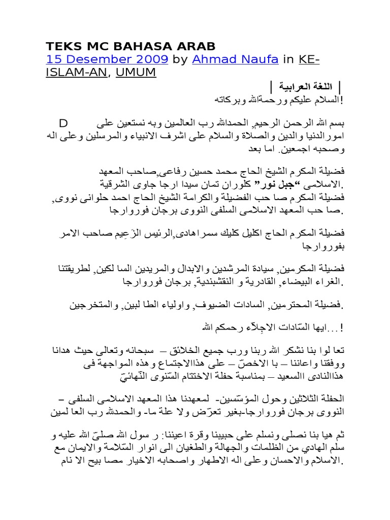 Contoh Teks Mc Arab Dan Terjemahannya Pdf